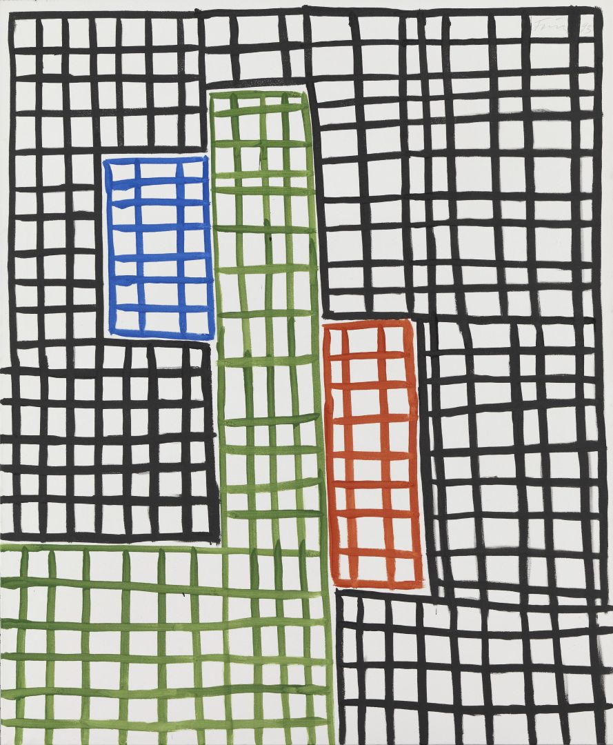 GF: Nein, gar nicht. Cotton duck war für mich immer so eine Leinwand. Man muss es anders sagen. Also, an der Akademie fand ich den Nessel einfach klasse, diesen dünnen Nessel. Gut, Mitte der achtziger Jahre hatte ich schon ein bisschen Erfolg, ja, und da kann man nicht mehr auf so einem dünnen schäbigen Nessel malen, sondern es musste irgendwie – an Leinen wollte ich aber auch nicht ran – da dachte ich mir, das ist zu kunstverdächtig. Und habe deswegen diese Zwischenform gewählt, Cotton duck, das liegt da wie ein Brett, das ist ja dieses Segeltuch. Und das war für mich so eine Mischform, also Leinen wollte ich nicht. Wobei ich heute Cotton duck nicht mehr so mag. Heute nehme ich eine grundierte Leinwand her.