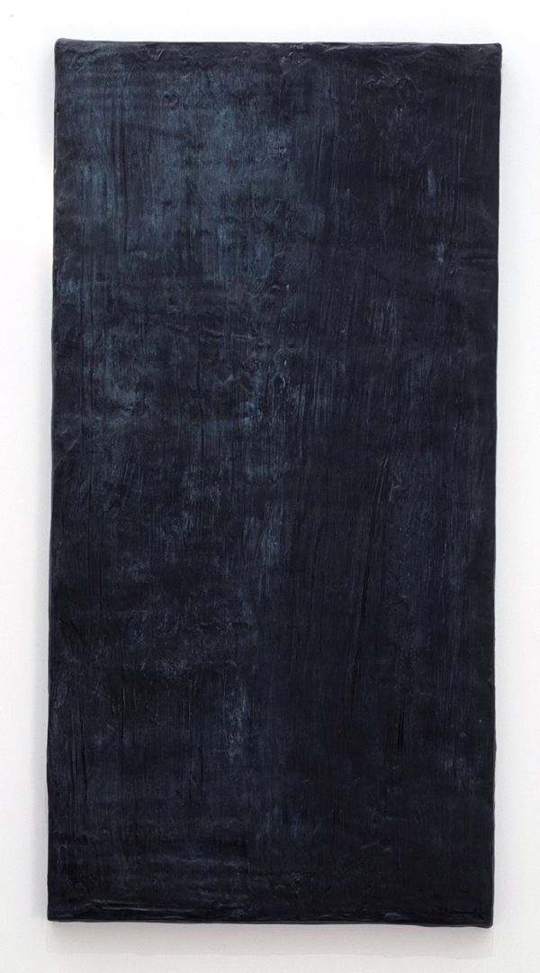 EGC: Im Interview erwähnst Du eine schwarze Grundierung, über der ein grauer Schleier liegt, ähnlich einer gemischten Schultafel. Wie bist Du vorgegangen? Handelte es sich wirklich um eine schwarze Grundierung? Schon als ersten Auftrag auf der Leinwand oder hast Du schwarze Schichten über eine eventuelle weiße Grundierung aufgetragen, oder wurde die Grundierung in mehreren Schichten aufgestrichen?