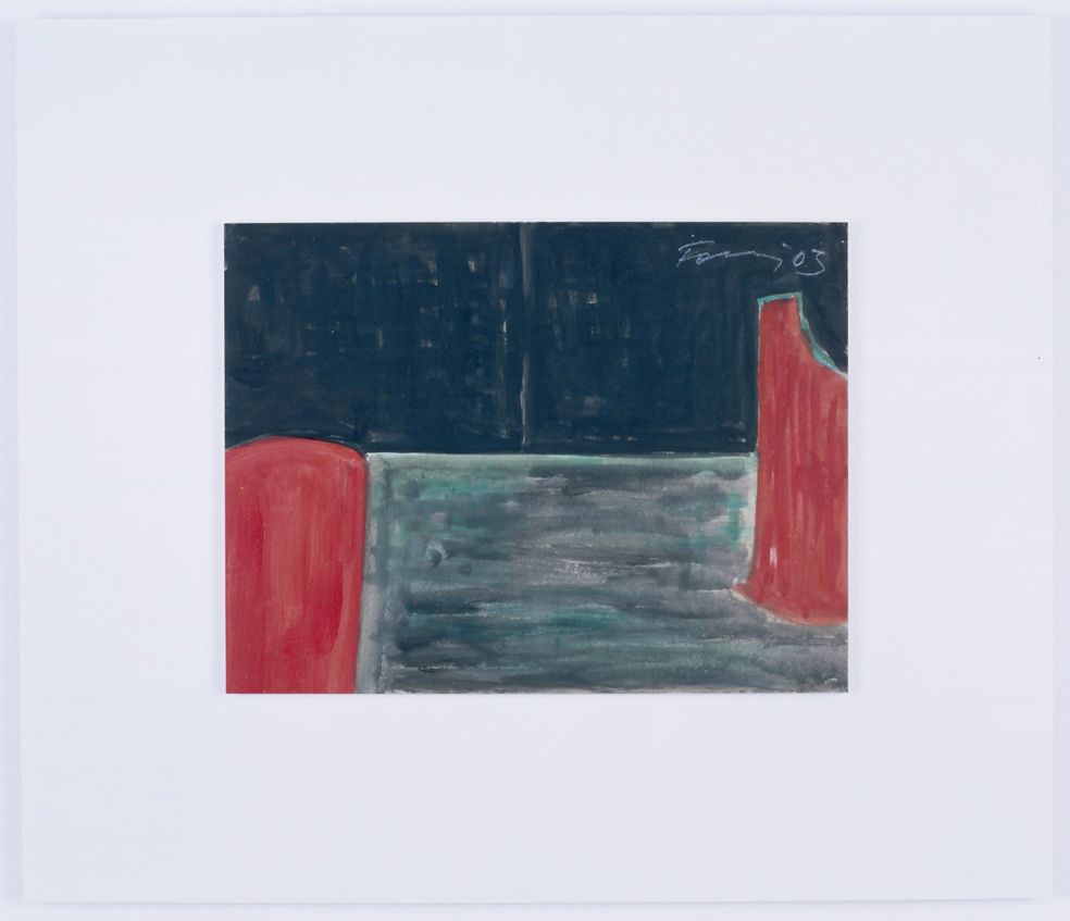 EGC: Seit 1978 hast Du immer wieder farbige Räume bzw. Wandmalereien ausgeführt. Die überwiegende Zahl Deiner Wandmalereien entstand 1986. Hierzu gibt es eine Reihe von Entwürfen auf Papier, abgebildet im Katalog »Günter Förg: Bilder Paintings 1973–1990« der Galerie Max Hetzler von 2004. Auf diese Werkgruppe kommen wir im Komplex Arbeiten auf Papier zurück.