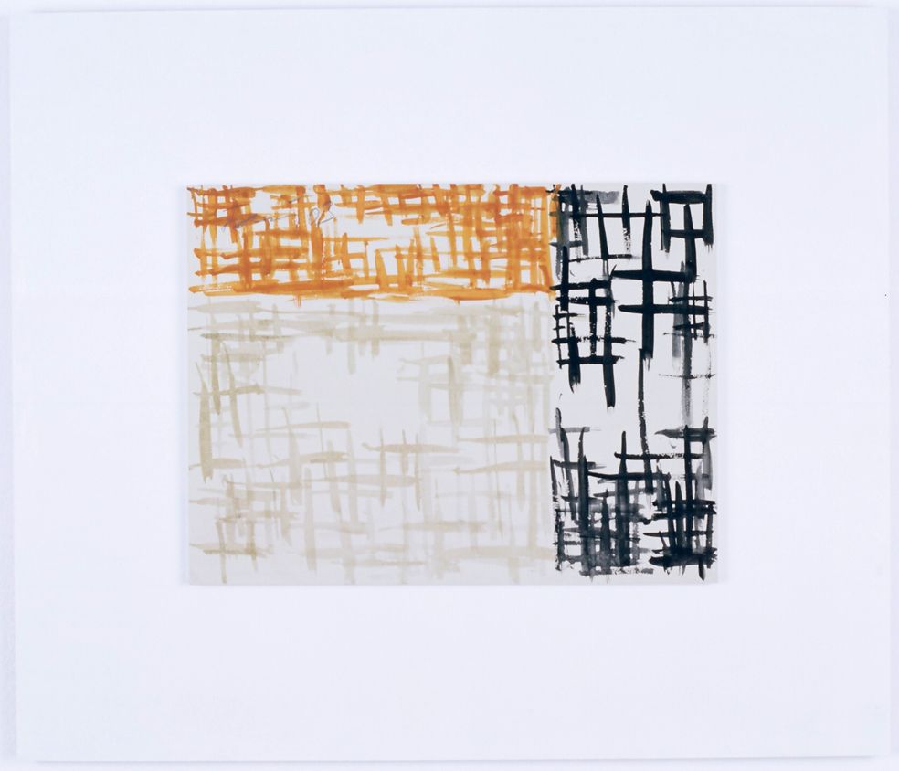 GF: Die letzte Wandarbeit, die entstanden ist, ist in Baden-Baden da unten im Café der Kunsthalle Baden-Baden. Karola Grässlin hat sich eine Wandarbeit gewünscht. Der Franz West hat irgendwelche Stühle gemacht. Das ist wie gewischt – kreuzweise, das gibt es auch als Bild, grau. Die hat es gemacht. Wahnsinnig interessieren tut es mich ehrlich gesagt nicht.