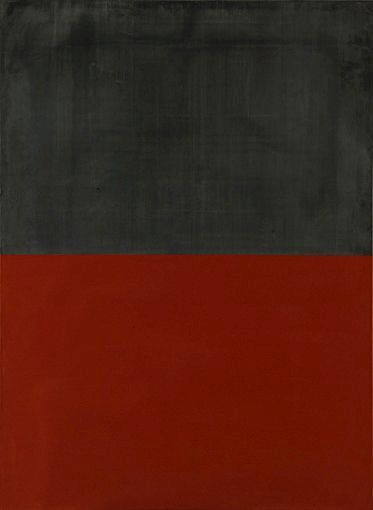 GF: Nein, es sind Flaschen. Und das dann! Und später... ich habe vielleicht gar nicht so bewusst darüber nachgedacht, aber mit diesen Plastikflaschen, zum Beispiel, kriegst Du kein Schwarz hin. Das wird immer Grau. Und dann hat mir irgendjemand gesagt: »Du, da gibt es eine Firma, die diese angemachten Pigmente..., wo Du so einen tiefen Ton hinkriegst.« Und dann habe ich einfach ein Grau gemischt, und das wird ganz dünn und dann mit dem Schwamm gewischt.